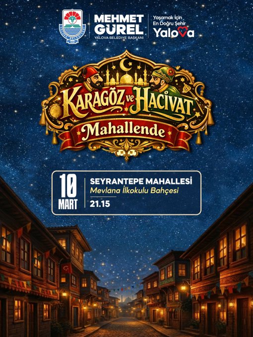 “Ramazan akşamlarının vazgeçilmez neşesi olan geleneksel gölge oyunumuz Karagöz ile Hacivat’ı, mahalle mahalle Yalova’mızda çocuklarımız ve ailelerimizle buluşturmaya devam ediyoruz. Etkinliğimiz ücretsizdir. Geleneksel Ramazan ikramlarımız sizleri bekliyor. Tüm mahalle sakinlerimizi ve sevgili çocuklarımızı bu güzel Ramazan akşamında birlikte gülmeye, eğlenmeye ve bu güzel geleneğimizi birlikte yaşatmaya davet ediyoruz.”